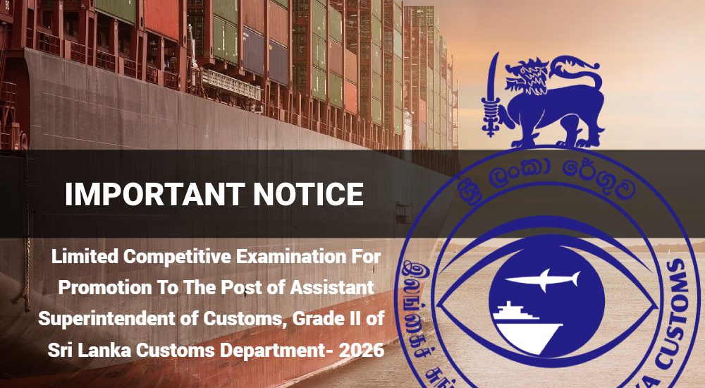 Sri Lanka Customs > Uncategorized > Limited Competitive Examination For Promotion To The Post of Assistant Superintendent of Customs, Grade II of Sri Lanka Customs Department- 2026